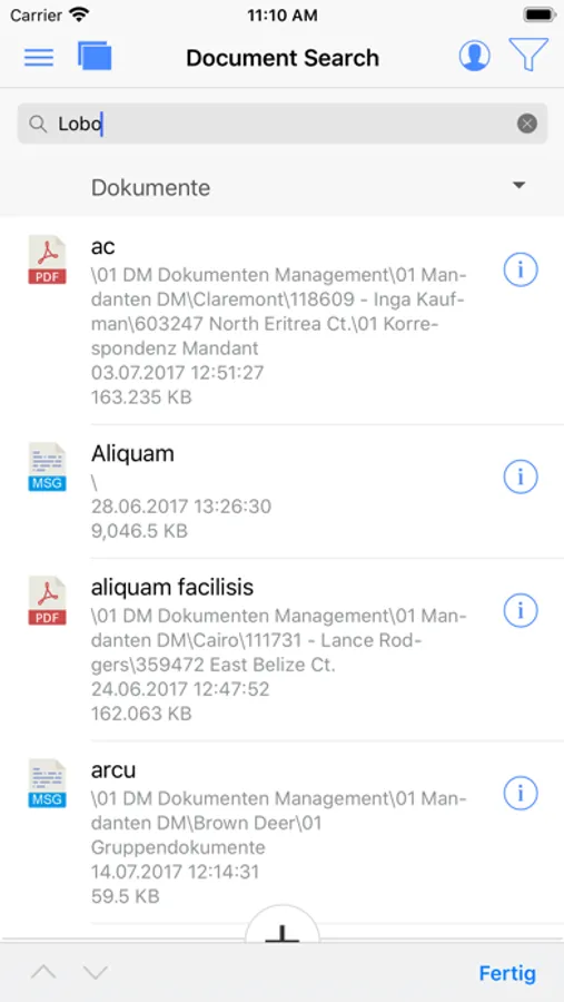 lobodms Mobile is a DMS client which allows you to connect to your lobodms Server using iPhone, iPod touch or iPad. With lobodms Mobile you can easily navigate through all documents in the system, e.g. search, preview, save locally, email documents and much more.