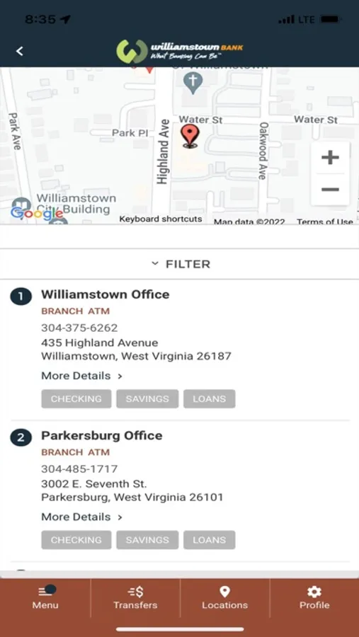 Start banking wherever you are with Williamstown Bank Mobile Banking! Available to all Williamstown Bank online banking customers, Williamstown Bank Mobile Banking Mobile allows you to check balances, make transfers, pay bills and find locations. Need to find a branch or ATM closest to you? With Locations, Williamstown Bank Mobile Banking App will discover your location and provide you with addresses and phone numbers on the fly.