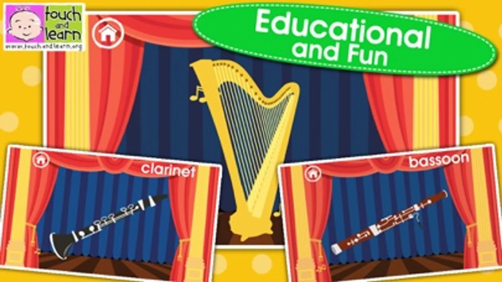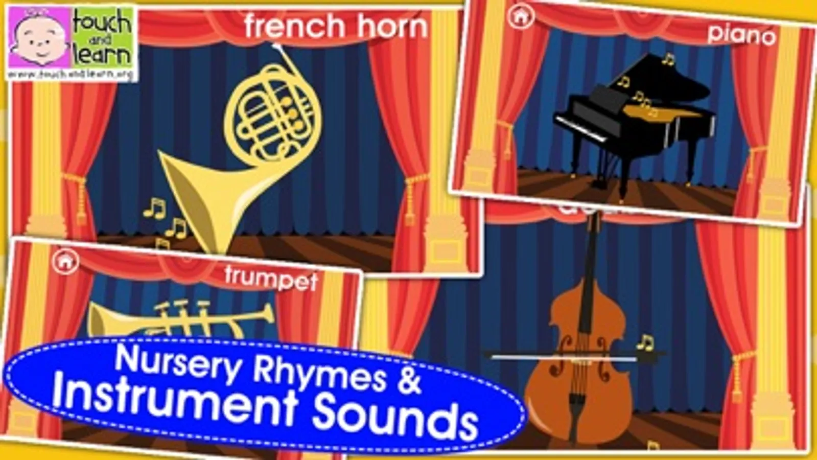 Peekaboo Orchestra HD is a stimulating, fun and educational way for children to discover the instruments of the classical orchestra. For younger children its simple mechanics help develop hand-eye coordination - a great introduction to basic computer skills. Older preschool children will enjoy learning the instrument names and associated sounds.