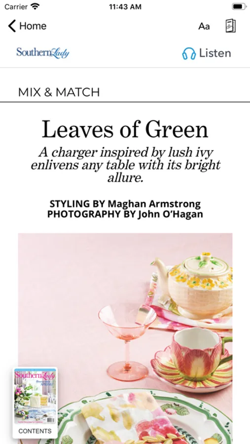 Southern Lady celebrates, delights, and inspires women who live in the South and those who are simply Southern at heart. Every issue features home design inspiration, recipes and elegant entertaining ideas, Southern travel destinations, fashion, and much more and now you can enjoy every single page on the iPad! Download our Free App to get started! You will also have access to purchase our special issues released several times throughout the year.