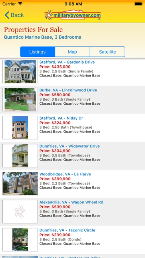 • Find Homes near your current location: Already at your next duty station? Use this feature to find homes in close proximity to your location