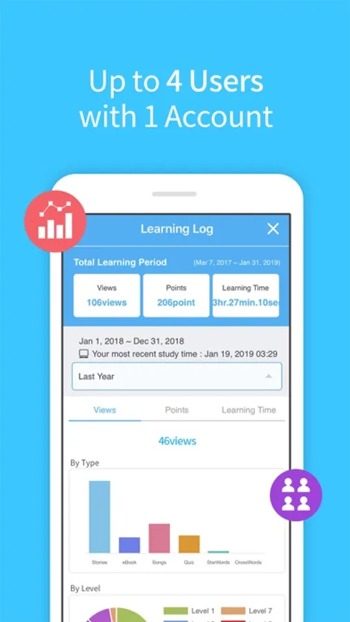 – Add up to Three Children! One account is for up to four users, with individual learning data. Parent users can monitor child users' learning progress.