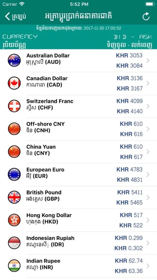 Keep track of currency exchange rate in Cambodia or convert them on the fly with this app. Rate is updated daily from respected financial institutions and banks in Cambodia.