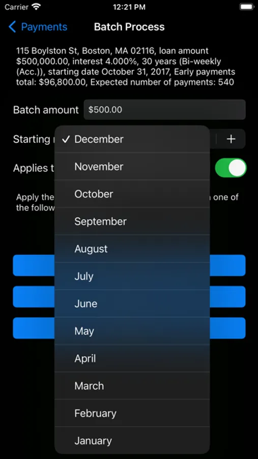 • You can enter and keep track of different additional principal amounts for any of your payment throughout the life of your mortgage.