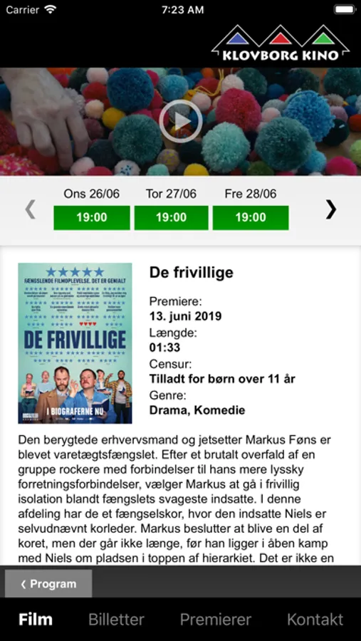 Med denne app har du mulighed for at gennemse programmet for Klovborg Kino samt se yderligere filminformationer som trailer, censur, medvirkende skuespillere, varighed m.m.