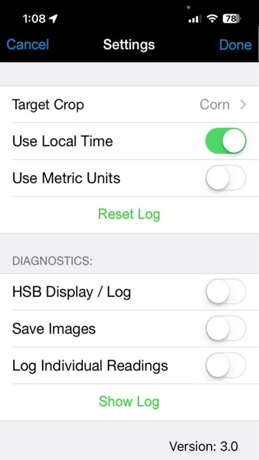 Requires a rear-camera-equipped iPhone, iPod Touch, or iPad, running iOS 8.0 or later. For DGCI calculations to be accurate, pictures must be taken with the leaves in front of a pink background board with specific green and yellow standard color disks. GreenIndex+ Boards are available from www.SpecMeters.com/GreenIndex.