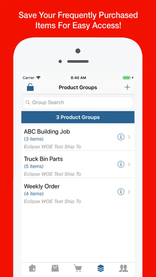 - Customer specific product groups that can be created to help increase productivity and efficiency throughout the ordering process