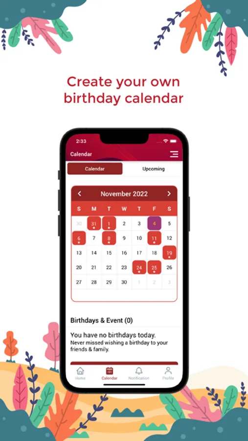 - Customizable birthday calendar that you can add birthdays and events by your own.