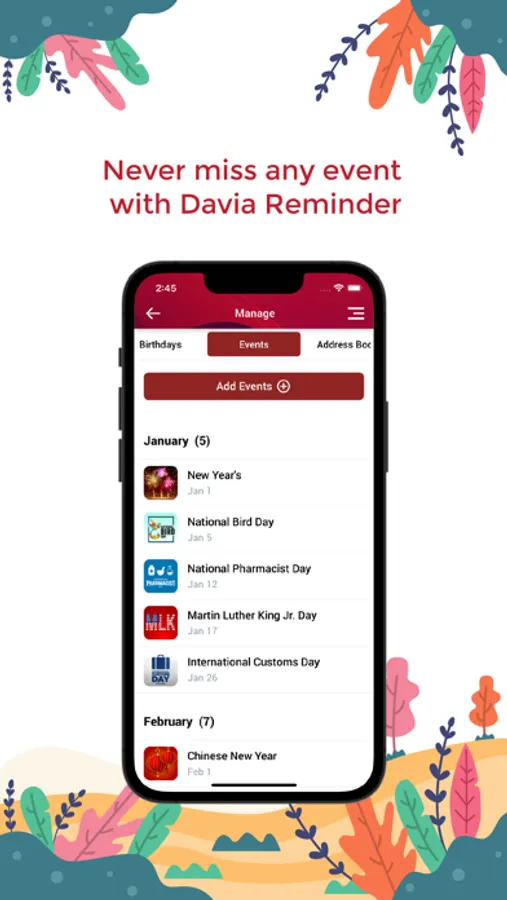 Birthday & Greeting Cards by Davia also offers a customizable birthday calendar. The app's push notification feature will remind you of your important birthdays and events. With Birthday & Greeting Cards by Davia app, you will never forget a birthday again!