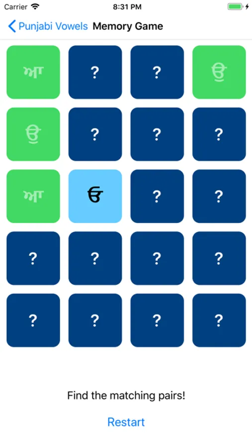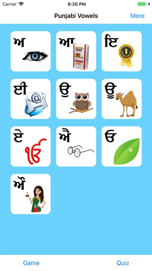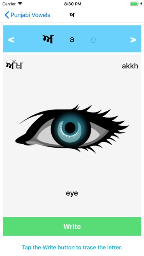 Study the Punjabi Vowels on your device! This app allows you to see the letters written, hear the pronunciation, and try writing them yourself in Gurmukhi.