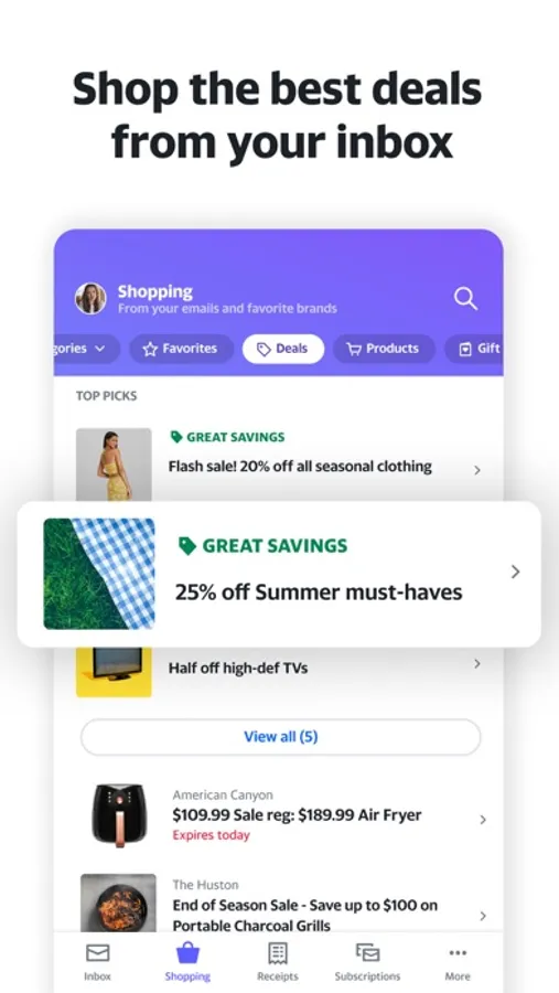 No more searching through countless promotional emails to find those savings. This view organizes your inbox around your favorite stores and the categories you shop. Now, find all your favorite deals—without the clutter.