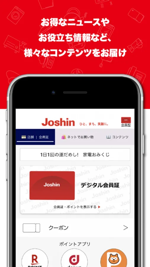 ジョーシンカード番号をご登録いただくことで、会員証としてご利用いただけます。