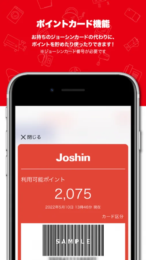 すでにお持ちのジョーシンカードの代わりに、アプリ提示でポイントを貯めたり使ったりできます。