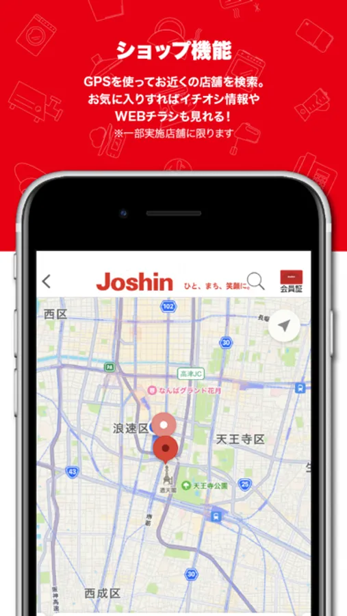 近くのショップを探す目的、その他の情報配信の目的でアプリから位置情報を取得させて頂く場合がございます。