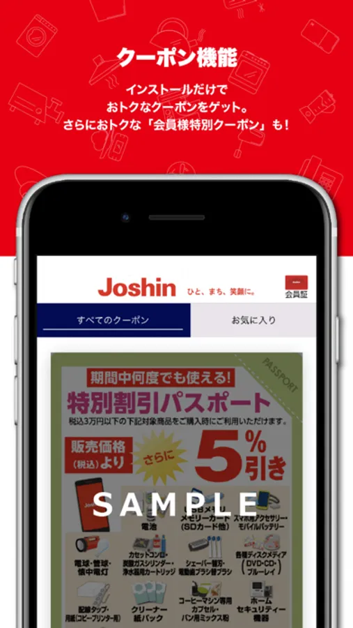 ジョーシンからのお得な情報を配信!アプリ限定のクーポンもお届けします。
