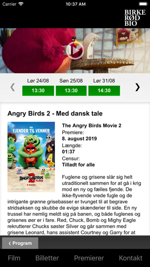 Med denne app har du mulighed for at gennemse programmet for Birkerød Bio 1-2, samt se yderligere filminformationer som trailer, censur, medvirkende skuespillere, varighed m.m.