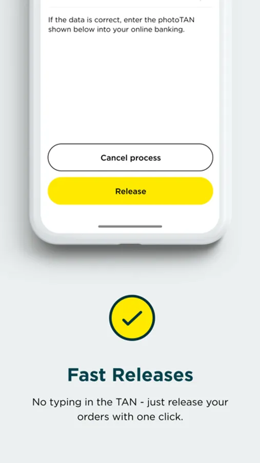 The push function of our new photoTAN app is particularly convenient. As soon as a new order is available for you to approve, we send you a notification to your smartphone when you use photoTAN-Push. When you then open the photoTAN app, the order to be approved is displayed directly for you to check. If the data displayed is correct, you release the order with just one click.