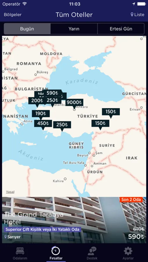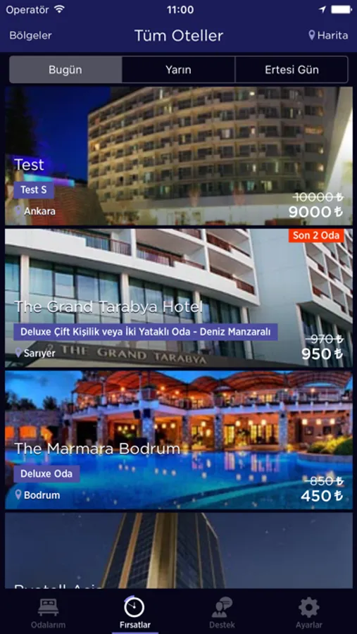 Saat 08:00'dan 00:00'a kadar oda rezervasyon fırsatlarını görüntüleyebilirsiniz.