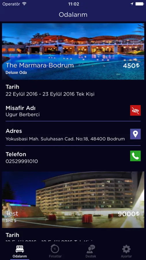 Otel arama veya rezervasyon sırasında herhangi bir sorunla karşılaşırsanız, ''Destek'' sekmesinden mail gönderebilir veya iletişim bilgilerimizi görüntüleyebilirsiniz.
