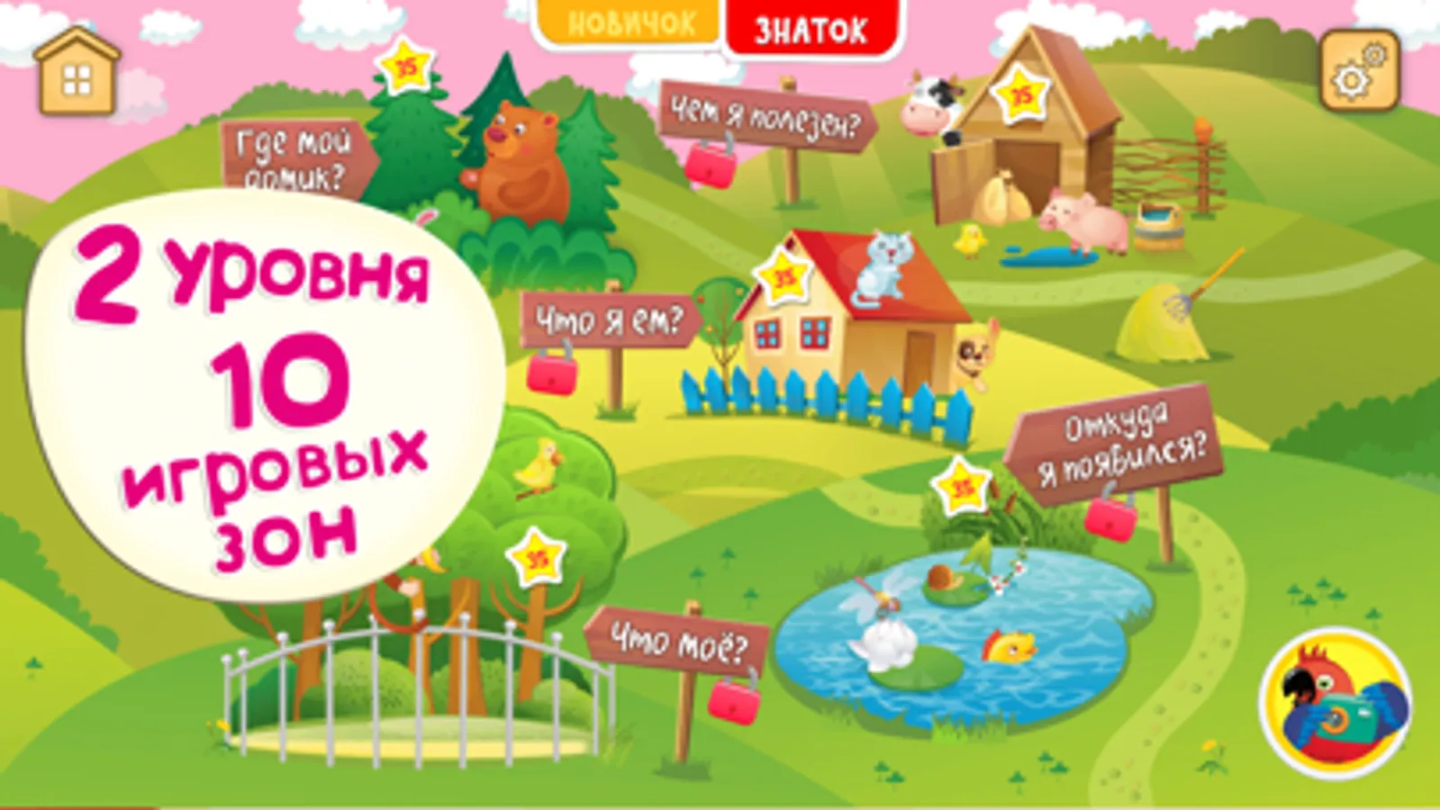 Вы уже познакомились со всеми животными и знаете, как они разговаривают? Пора узнать, что они едят, где живут, откуда появились, какую приносят пользу, и угадать, какая часть тела принадлежит какой зверюшке. Изучайте всё о животных, отвечая на вопросы и зарабатывая яркие звёзды за правильные ответы!