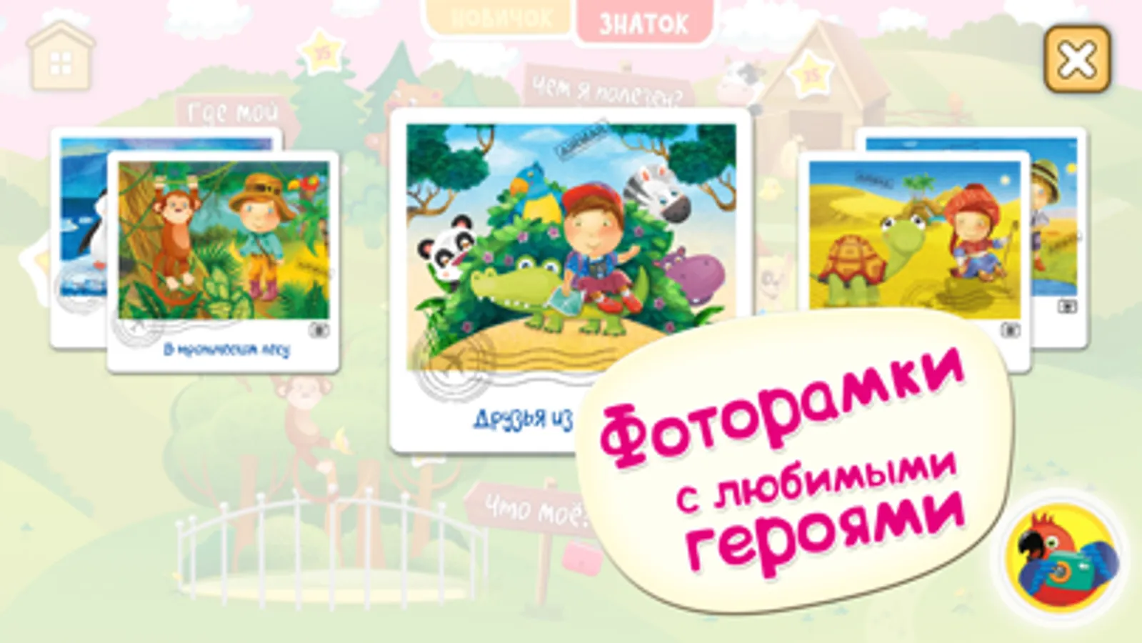 Куда подевались наши новые друзья? И кто это тут шумит? Попробуйте угадать всех зверят по звукам, которые они издают! С тремя подсказками вашему крохе будет совсем несложно сделать это самостоятельно. Получайте яркие звёзды за каждый правильный ответ и открывайте новые зоны и фоторамки!