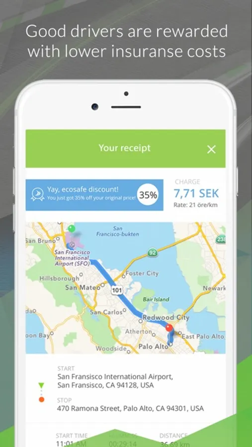 For customers based in Sweden: Enerfy offers a pay-as-you-drive car insurance where you only pay for what you drive. Additionally, if you drive well, you get rewarded with an Eco-Safe discount on your premium.