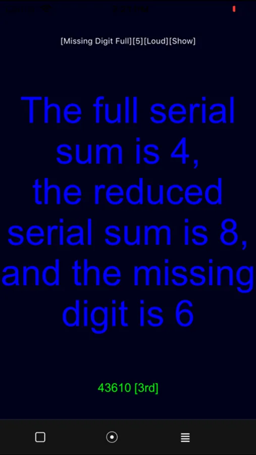 The app cycles through "Serial Thrillers'" logical phases and serves as a virtual spectator who whispers random digits. It allows you to validate your conclusions against the correct response before taking you right into the next cycle.