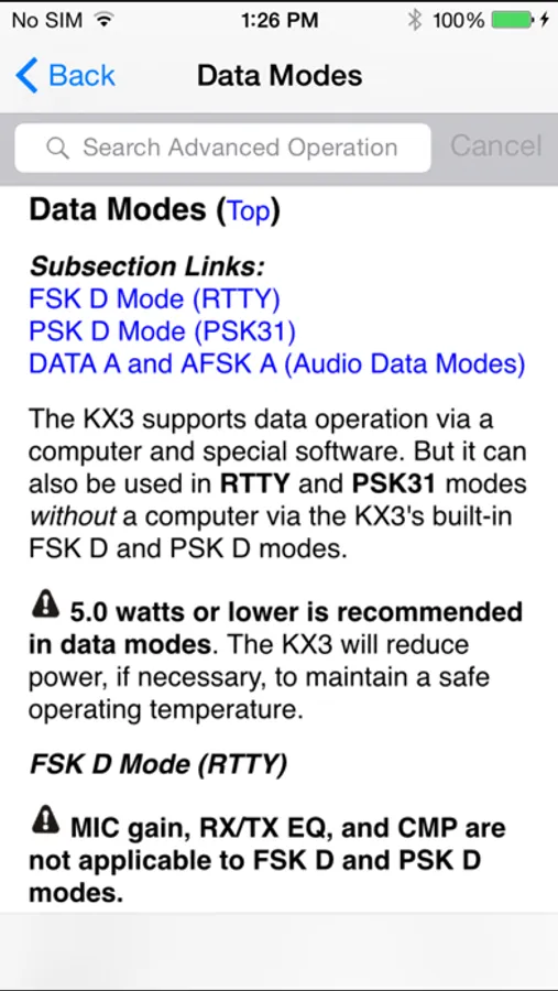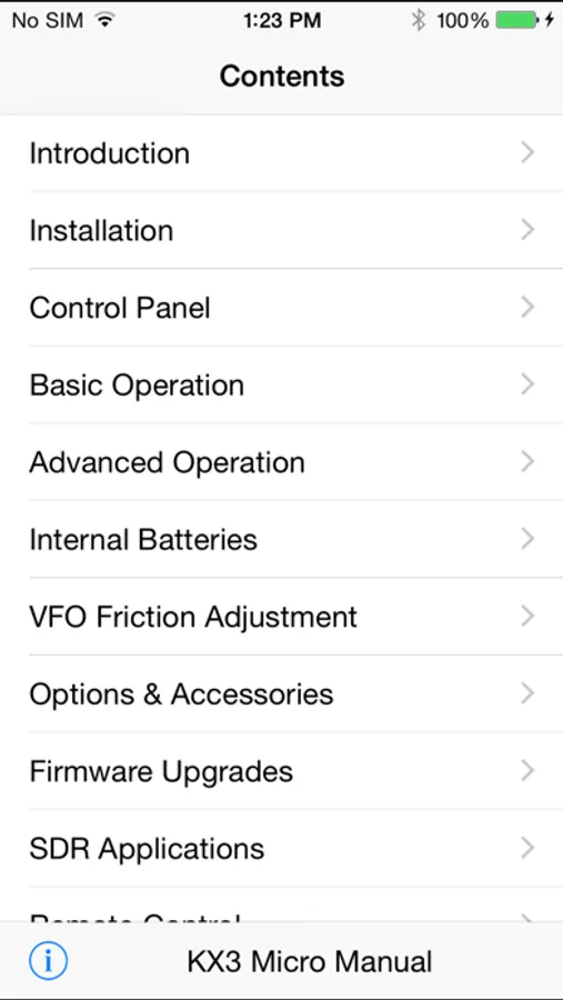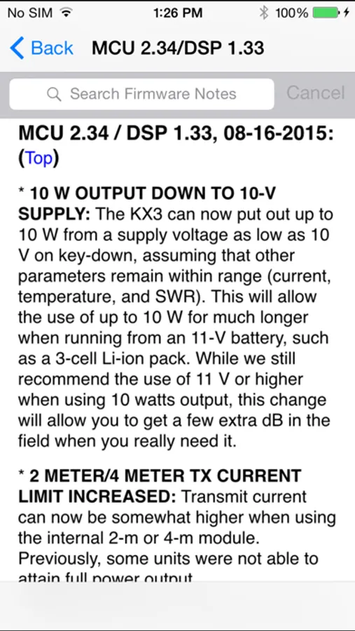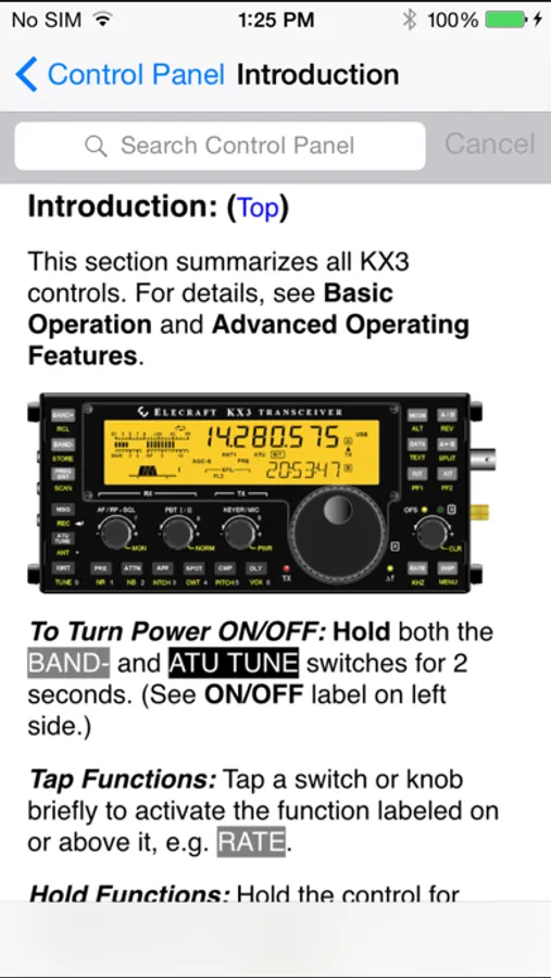 * The application includes the entire text of the Owner's Manual plus notes on all firmware upgrades since the KX3 was introduced.
