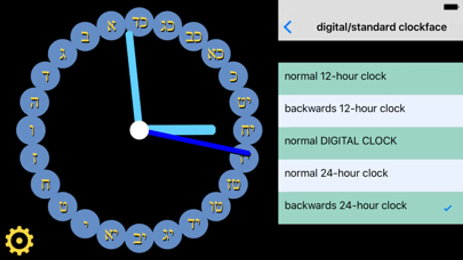 - Backwards running 24 hour clock