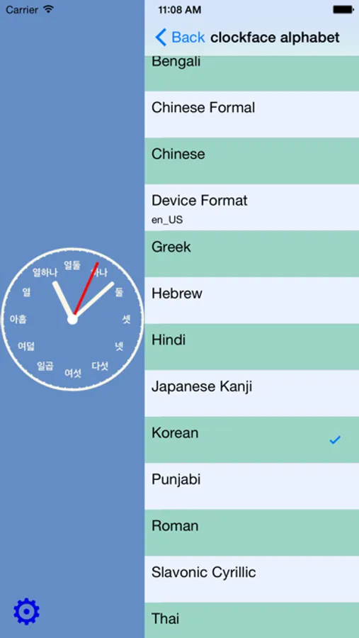- Beautiful analog clock, with clockfaces for lots of alphabets: e.g. Bengali, Chinese, Hebrew, Hindi, Japanse, Korean, Punjabi, Roman, Thai, Western and more
