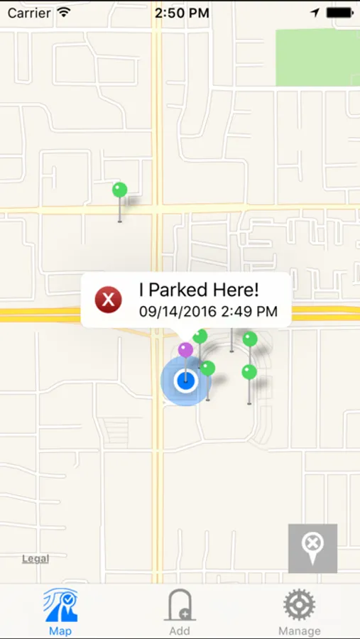 - Tap the button on the bottom right to toggle between your parking spot and your current location.