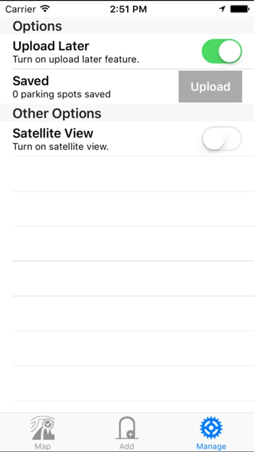 -- Upload Later lets you save parking spots to your phone and upload them later. Ideal if you want to wait for a WiFi connection to send the images or for bicycle parking in locations with weak cell signals.
