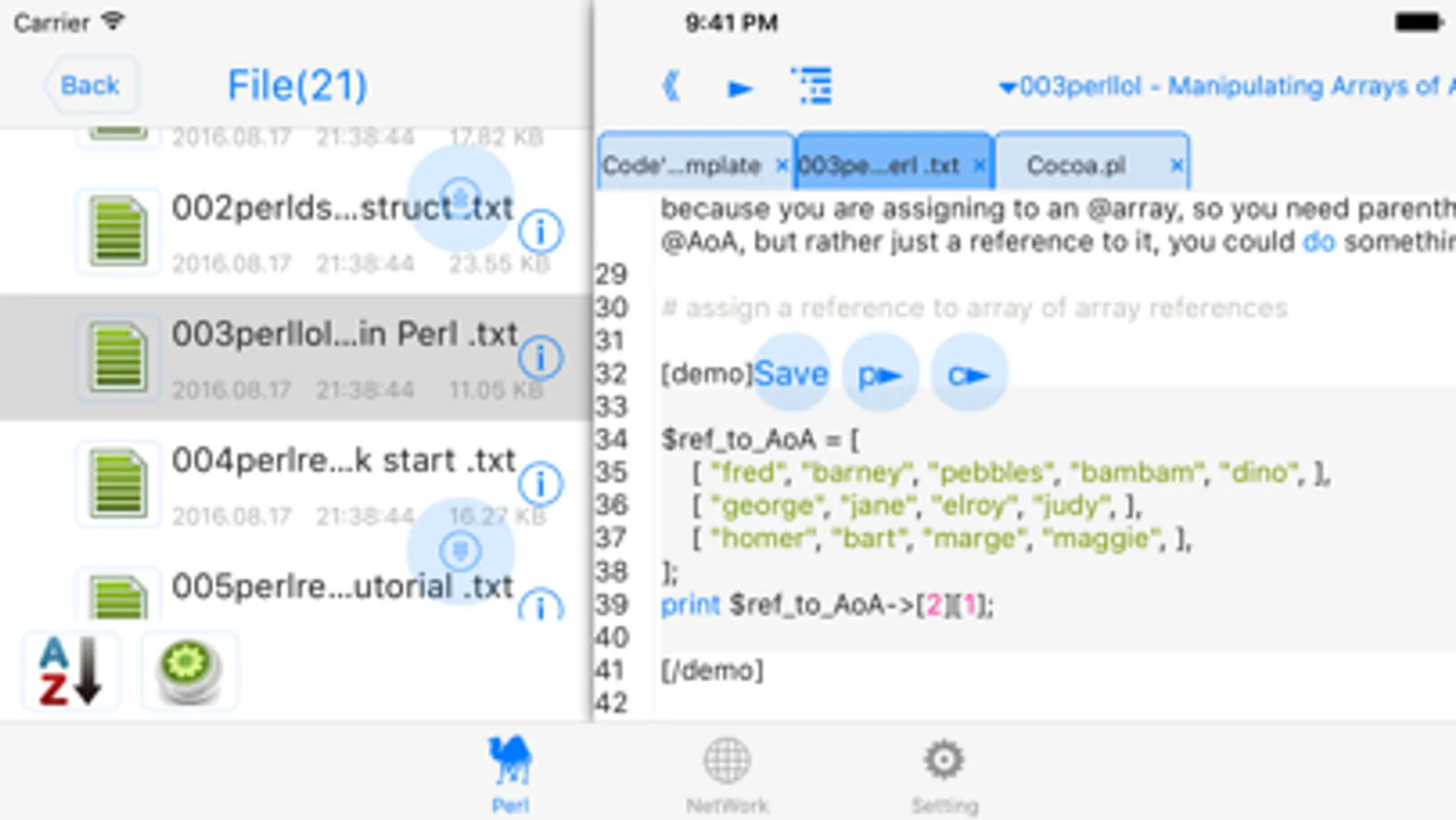 *You can save perl code and learning materials, and can be modified to the save file and delete the save file .