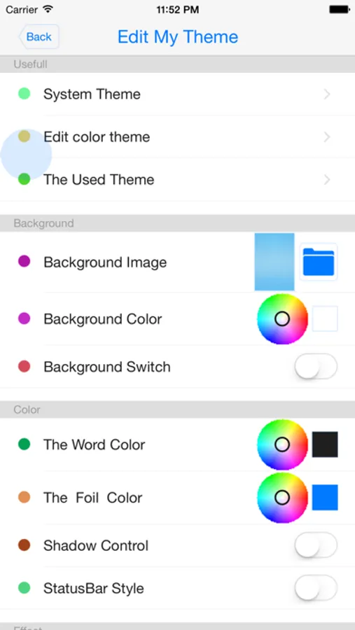 *You can control the background image and color, and execution voice , background animation, text color and shadow, switch interface animation , the number and the order of the main interface of the tab bar to create your learning software.