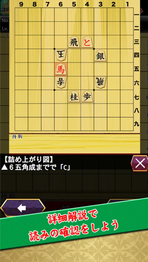 「詰将棋を解く」をタッチすると作品が表示されます。