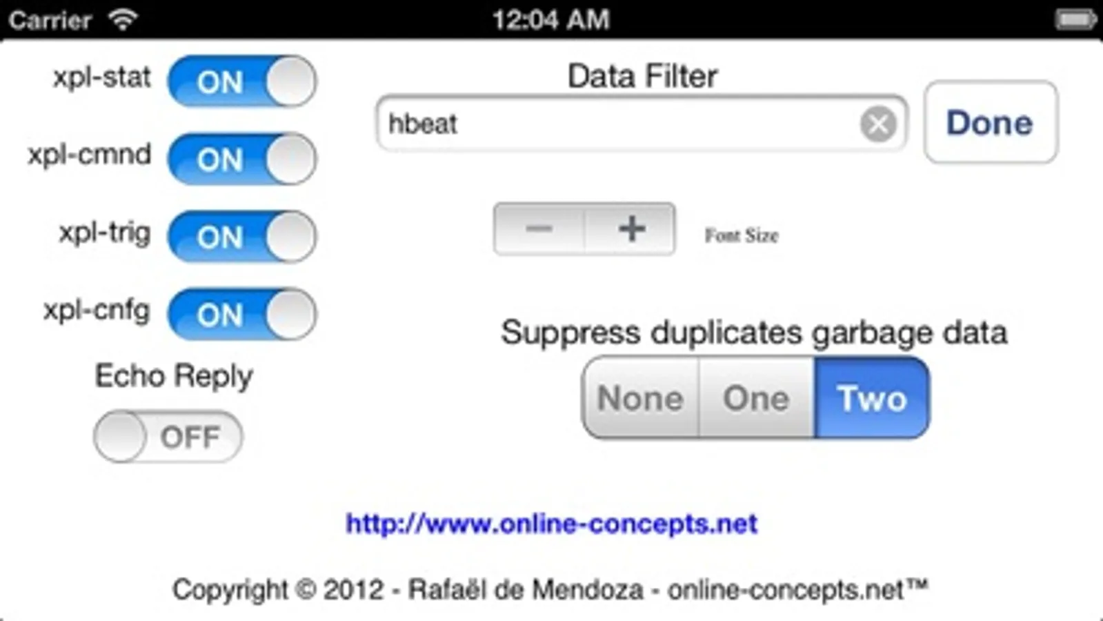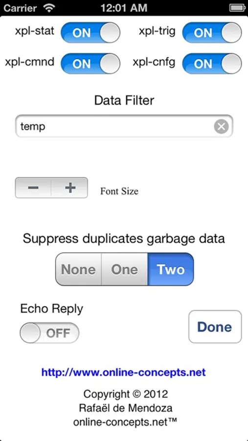 It provides options such as filtering by xPL paquet types or by keywords, automatic forwarding of messages received (Echo repply) and much more.