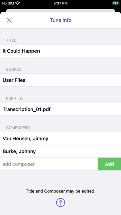 • Tune Info Editing - For any user files you have added, you may now edit the title as well as add composer information.