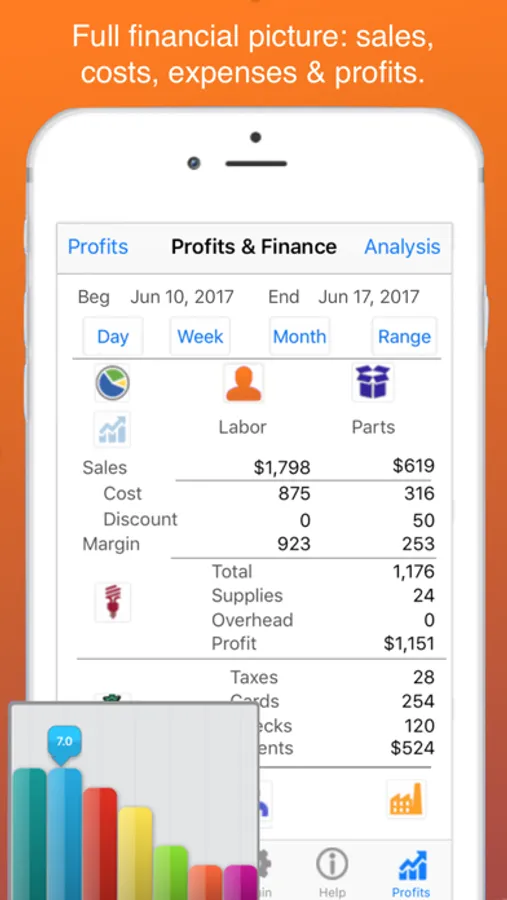 Profits provides a complete financial system that tracks all sales, purchases and expenses. Includes ALL formatted PDF Reports that can be directly printed or attached to emails.