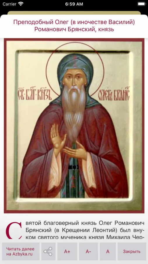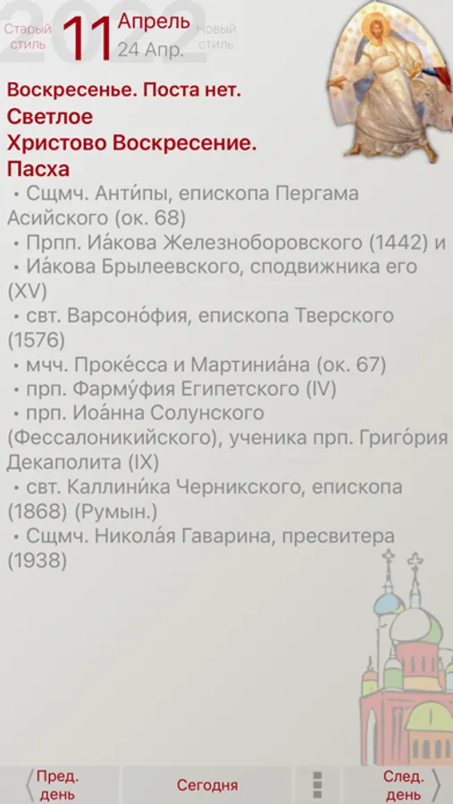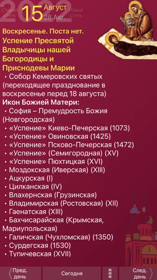 Полный православный церковный календарь от портала «Азбука веры» на каждый день года с месяцесловом (житиями святых и иконами).