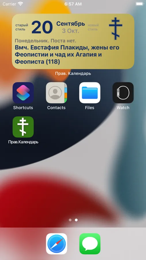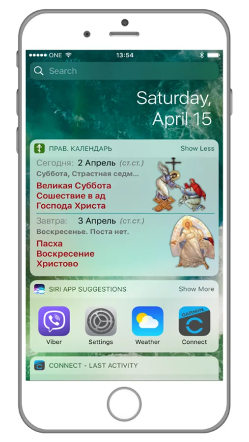 Виджет на главном экране и на экране „сегодня“.