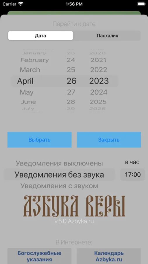 Переход к любой дате и любому пасхальному празднику.