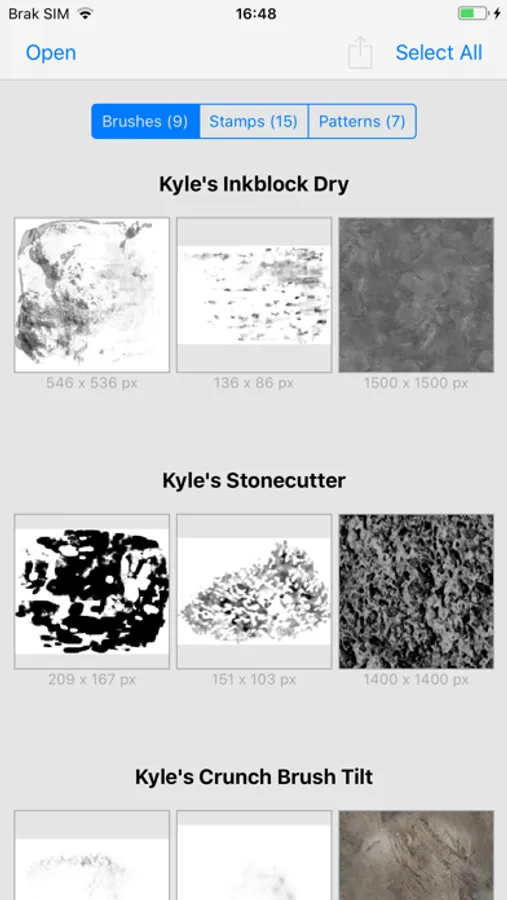 Here is a small but polished tool that allows you to open, view and extract images from abr (brushes), tpl (tool presets) and pat (patterns) files. Abr/tpl/pat are the most popular formats to share brushes and patterns, you can find thousands of them in Internet.