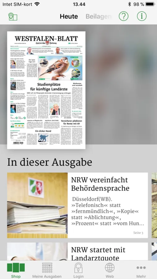 Nach dem Download Ihrer Zeitung stehen Ihnen die Inhalte auch ohne Internetverbindung zur Verfügung.