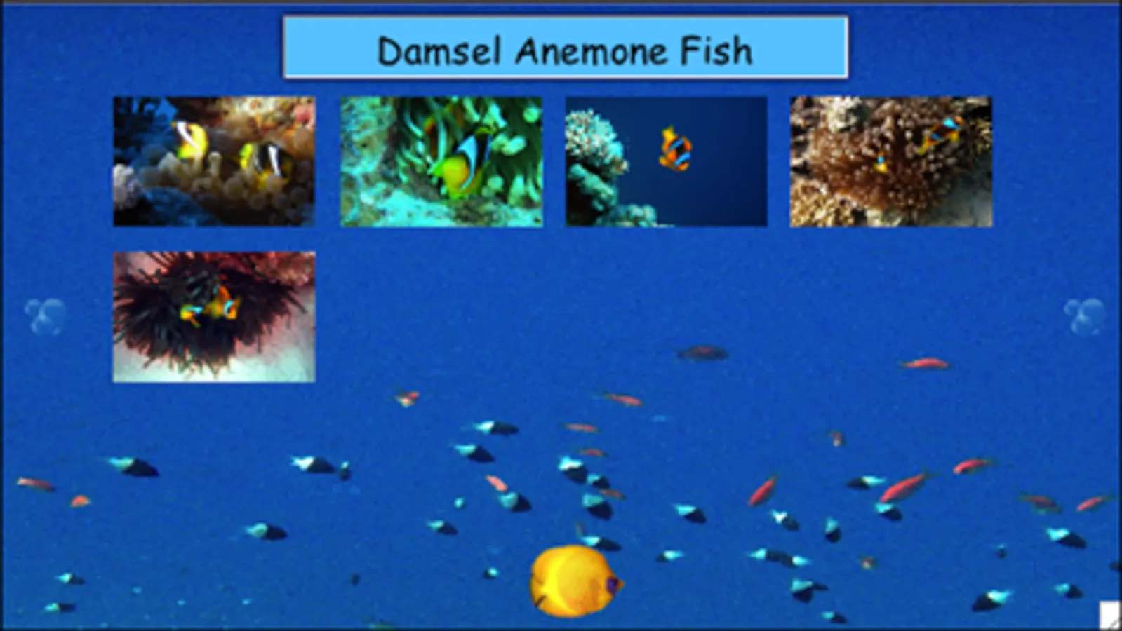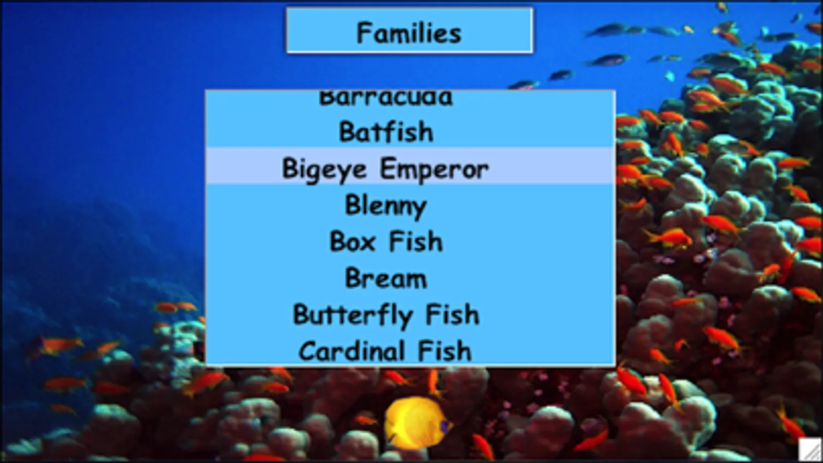 The app provides a beginner's diving quiz, a slideshow and information about the fish. You can also browse the photographs manually and if you tap the centre of the screen, a link to Wikipedia and an information box will appear. Tapping this box makes it disappear again. You can also choose to browse by colour or family.