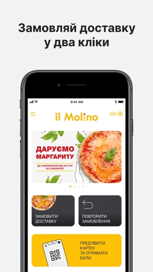 Начиная с 20 сентября 2013 года, используя приложение, вы можете предъявлять бонусную карту Семьи пиццерий il Molino при каждом посещении нашего заведения, получать баллы и обменивать их на приятные подарки. При каждом заказе в любой пиццерии il Molino покажите официанту приложение и получите бонусные баллы.