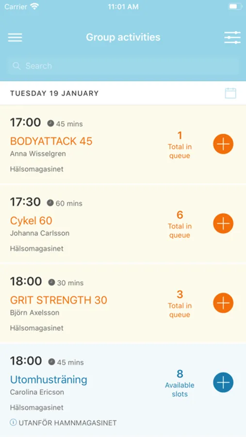 Du loggar in med samma användarnman och lösenord i appen som i vår internetbokning.