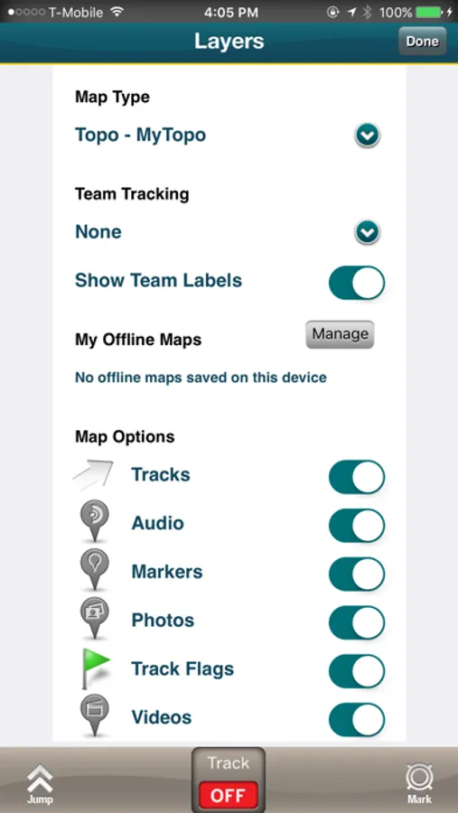The TNP mobile app uses the GPS built into the iPhone, so professionals can collect field data in areas without a cellular or data signal. In addition, users can download and store topographic, aerial, and street maps onto the phone for offline use and data display. Your data is stored on your iPhone, so there’s no need to have a network connection.