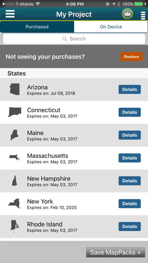 This app syncs to our award-winning Terrain Navigator Pro mapping software, which has been fine-tuned based on more than a decade of feedback from professionals who rely heavily on maps in the field. The TNP software provides access to an easily catalogued collection of USGS/US Forest Service topographic maps, including 1:24,000 (7.5 minute series), 1:100,000 and 1:250,000 scale as well as seamless, 1-meter resolution color aerial photos dating back to 2003, and up to the most recent National Agriculture Imagery Program (NAIP) aerial imagery available. The software supports GIS and CAD export and import, and provides access to advanced mapping tools, including: range rings by time and distance, area fills and line-of-sight height offsets, geo-pins, geo-tips, Public Land Survey System (PLSS), advanced address search, up-to-date street data, and more.
