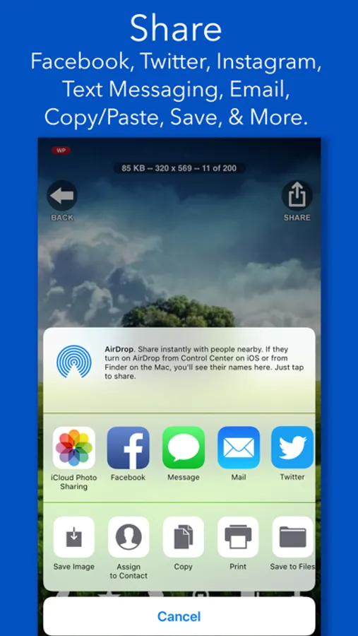 * A NOTE ABOUT COMPATIBILITY WITH NON-iPHONE USERS: Sharing images with Facebook, Twitter and Email works with pretty much anyone, but depending on what cell network and type of cell phone the person you're sending to has, some of the images you send via text messaging may not work.