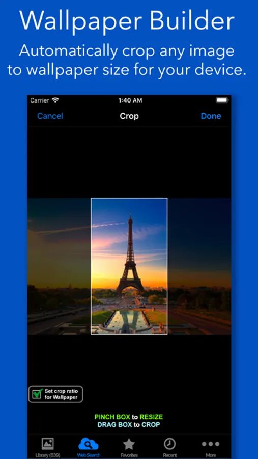 • WALLPAPER builder to quickly turn millions of images into the perfect wallpaper size.